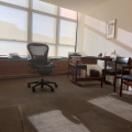 O consultório é bem amplo e confortável, assim como a sala de espera.